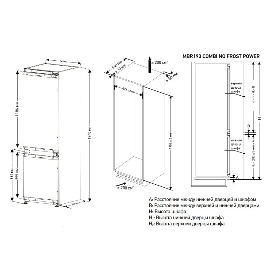 Холодильник встраиваемый MEFERI MBR193 COMBI NO FROST POWER — вместительное решение для современной кухни