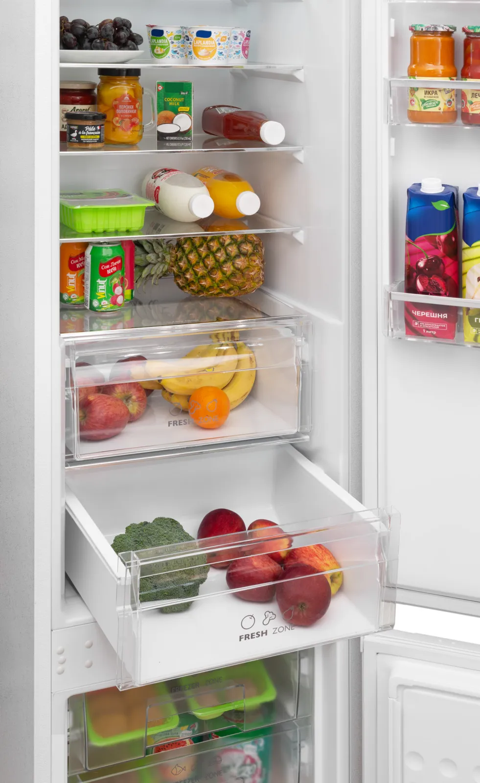 - Зона свежести: специальный отсек для овощей и фруктов, чтобы они дольше сохраняли свежесть и вкус.