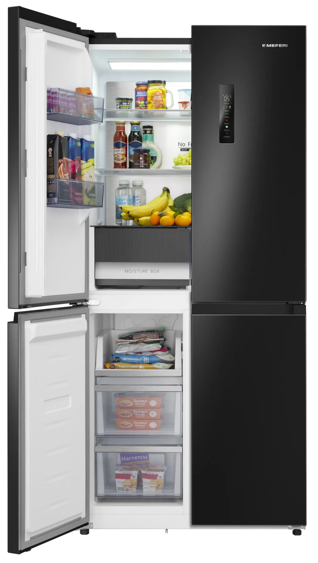 Отдельностоящий холодильник MEFERI MFR83BLACK IX TOTAL NO FROST CROSS DOOR COMFORT — стильный и практичный холодильник, который благодаря современным технологиям обеспечит комфортное хранение продуктов и экономию электроэнергии.
