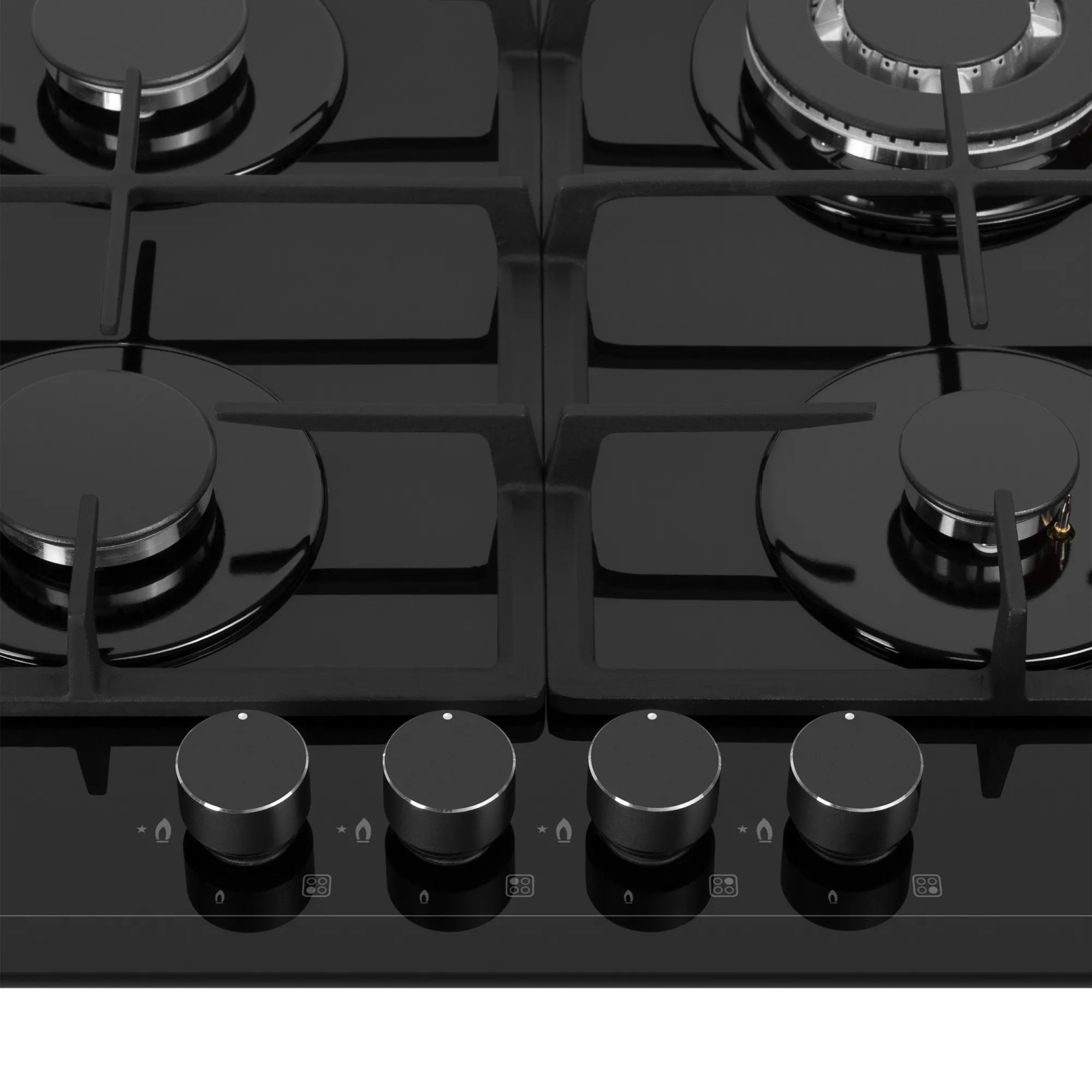 - Четыре конфорки, включая мощную конфорку WOK.