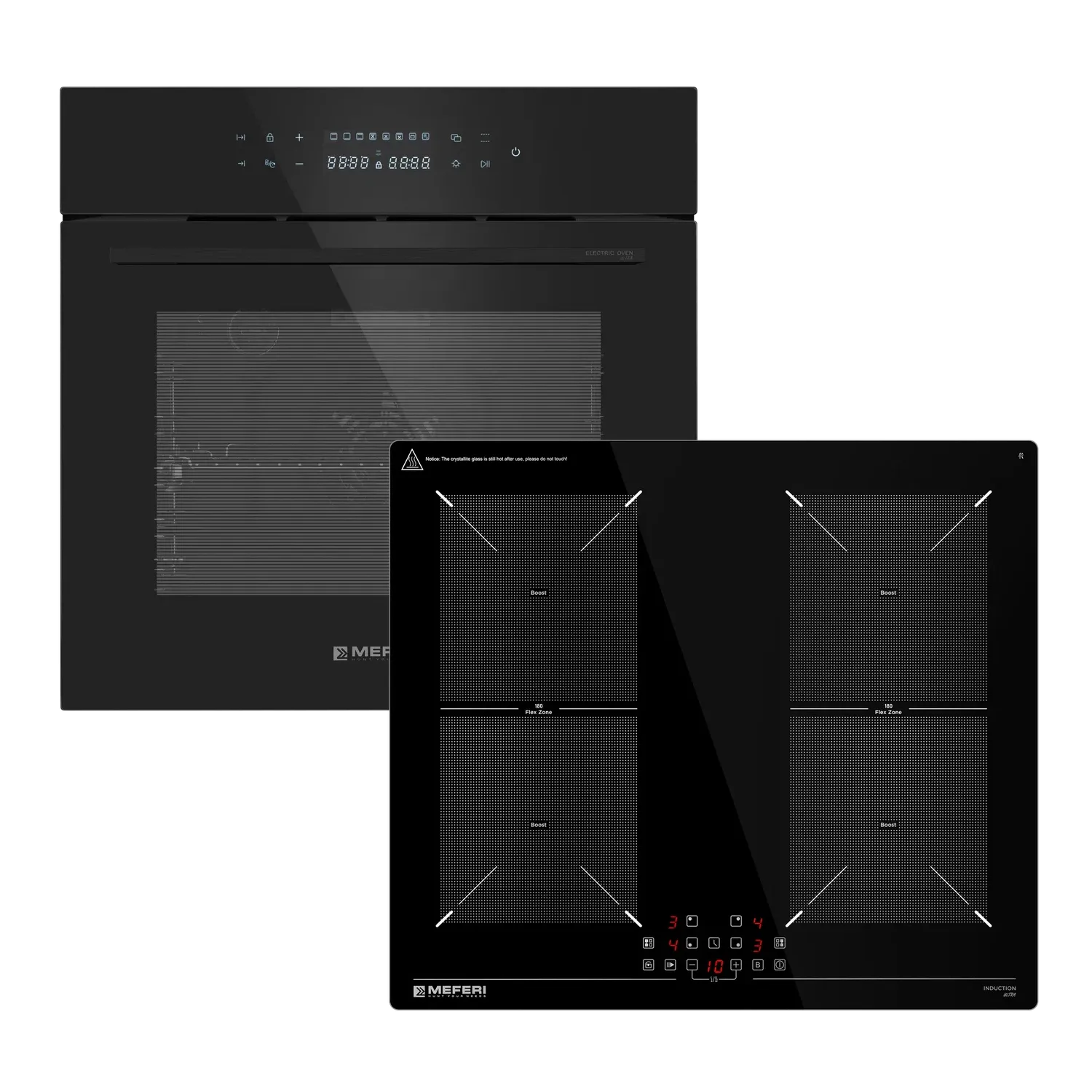 Комплект включает в себя электрический духовой шкаф MEO6010BK ULTRA и индукционную варочную панель MIH604BK ULTRA.