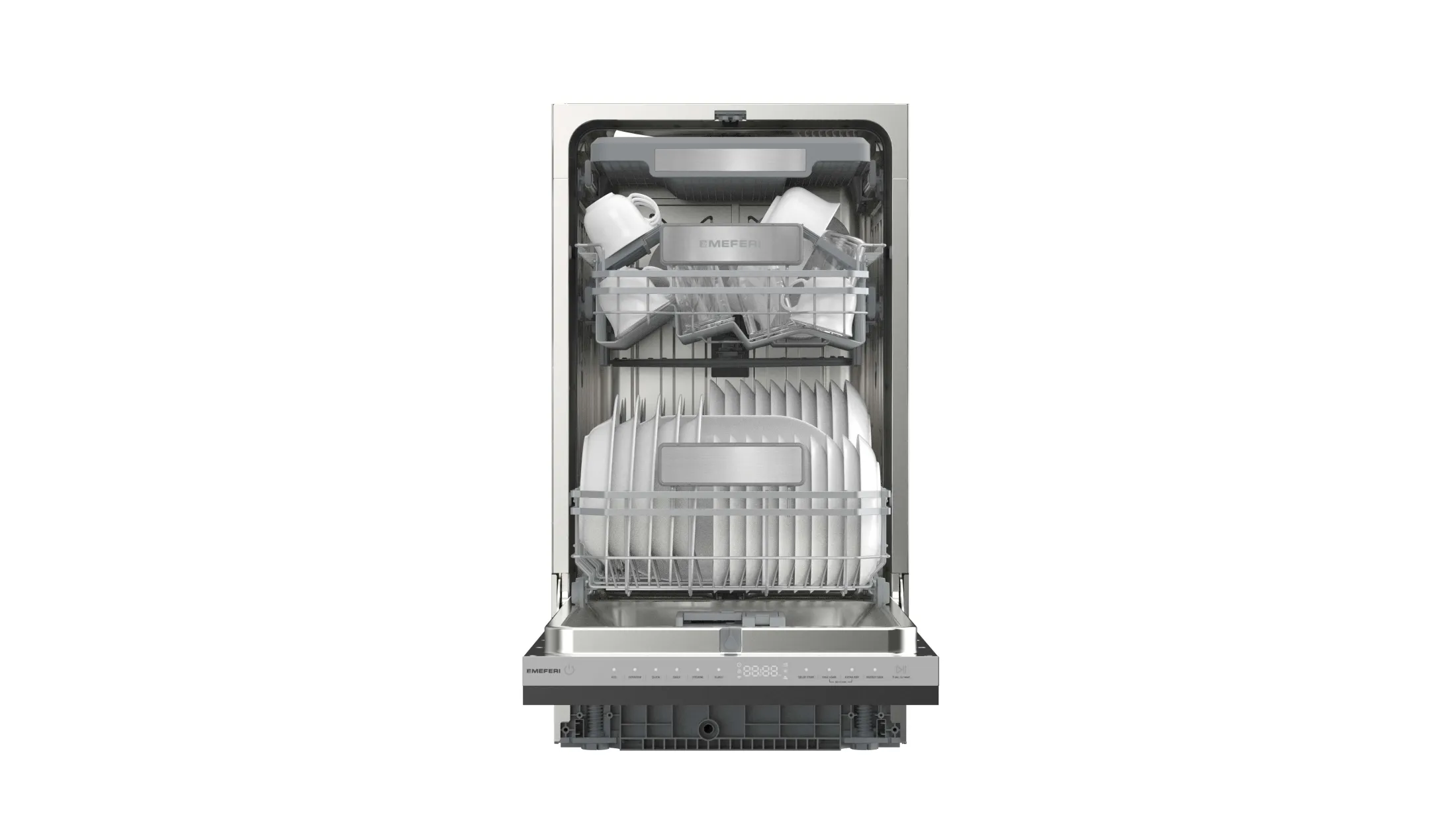 Посудомоечная машина узкая встраиваемая с инвертором MEFERI MDW4593 LUXE, 45 см, 10 комплектов посуды, автооткрывание дверцы, аквастоп, проекция обратного отсчёта времени, внутренняя подсветка, половинная загрузка, таймер
