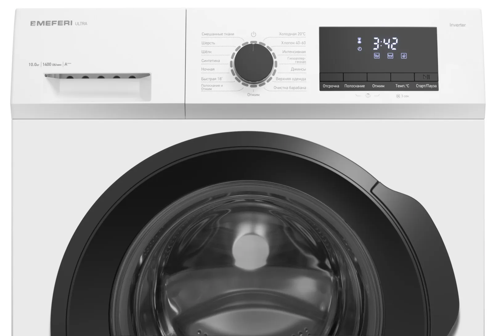 Отдельностоящая стиральная машина с инвертором MEFERI MFW101415WH ULTRA — высокая эффективность и современный дизайн