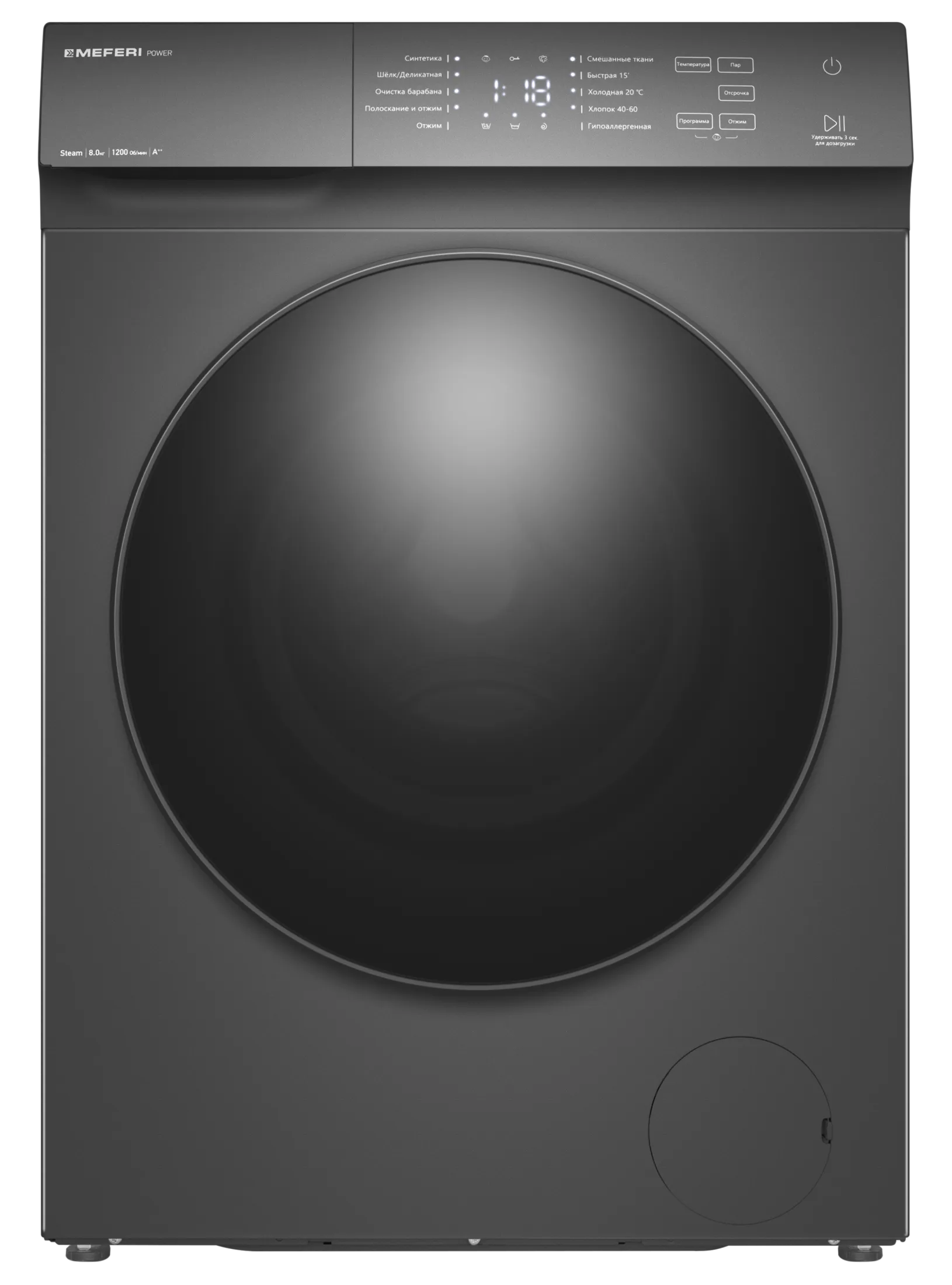 Отдельностоящая стиральная машина с паром MEFERI MFW081210GR POWER — современный дизайн и передовые технологии стирки