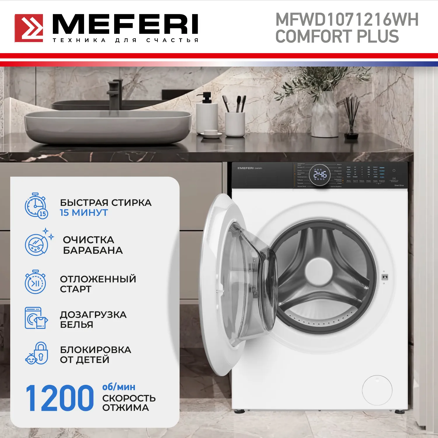 Стиральная машина MEFERI MFWD1071216WH COMFORT PLUS — это идеальный выбор для тех, кто ценит качество, функциональность и удобство в уходе за домашним бельем. Гарантия на машину составляет 3 года, что подтверждает ее качество и долговечность.