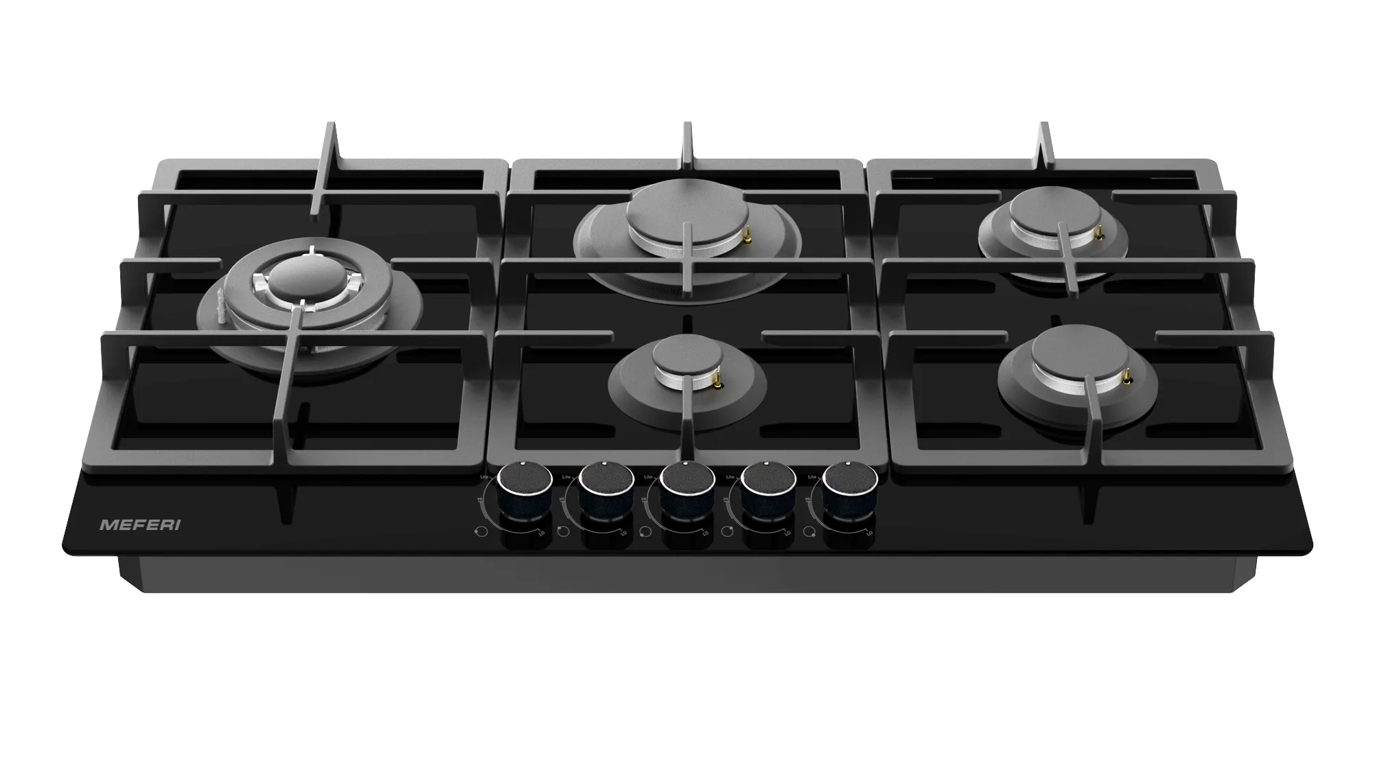 MEFERI MGH905BK GLASS ULTRA – газовая варочная панель профессионального уровня с конфорками SABAF, поверхностью из закалённого стекла и передовыми системами безопасности. Идеальное сочетание мощности, стиля и надежности для кухонь от бренда MEFERI.
