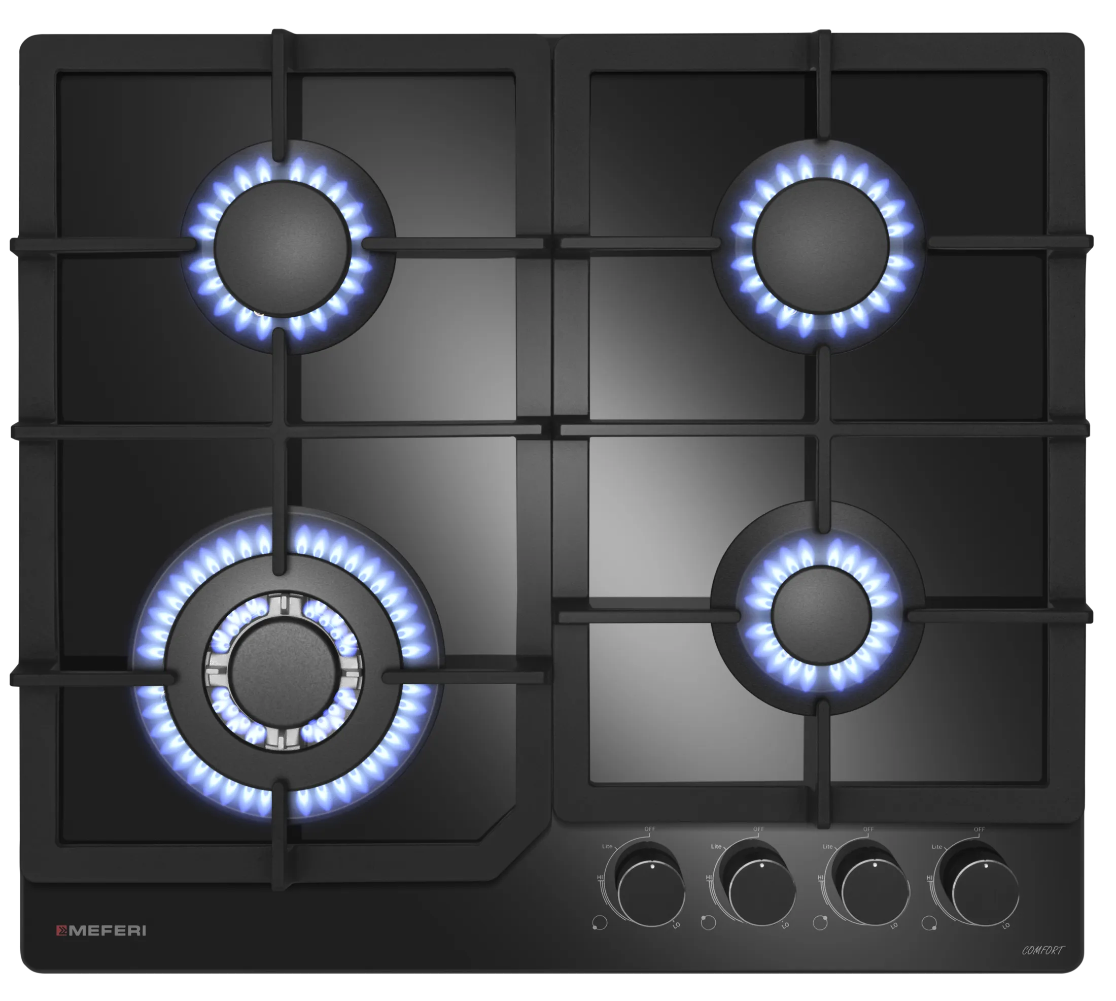 MEFERI MGH604BK GLASS COMFORT – это не просто варочная панель, это ваш помощник на кухне, чтобы вы могли приготовить вкусные блюда быстро и легко. Она идеально сочетается с духовыми шкафами черного цвета серии COMFORT и COMFORT PLUS, черными вытяжками GLASS COMFROT, COMFORT PLUS, GLASS ULTRA.