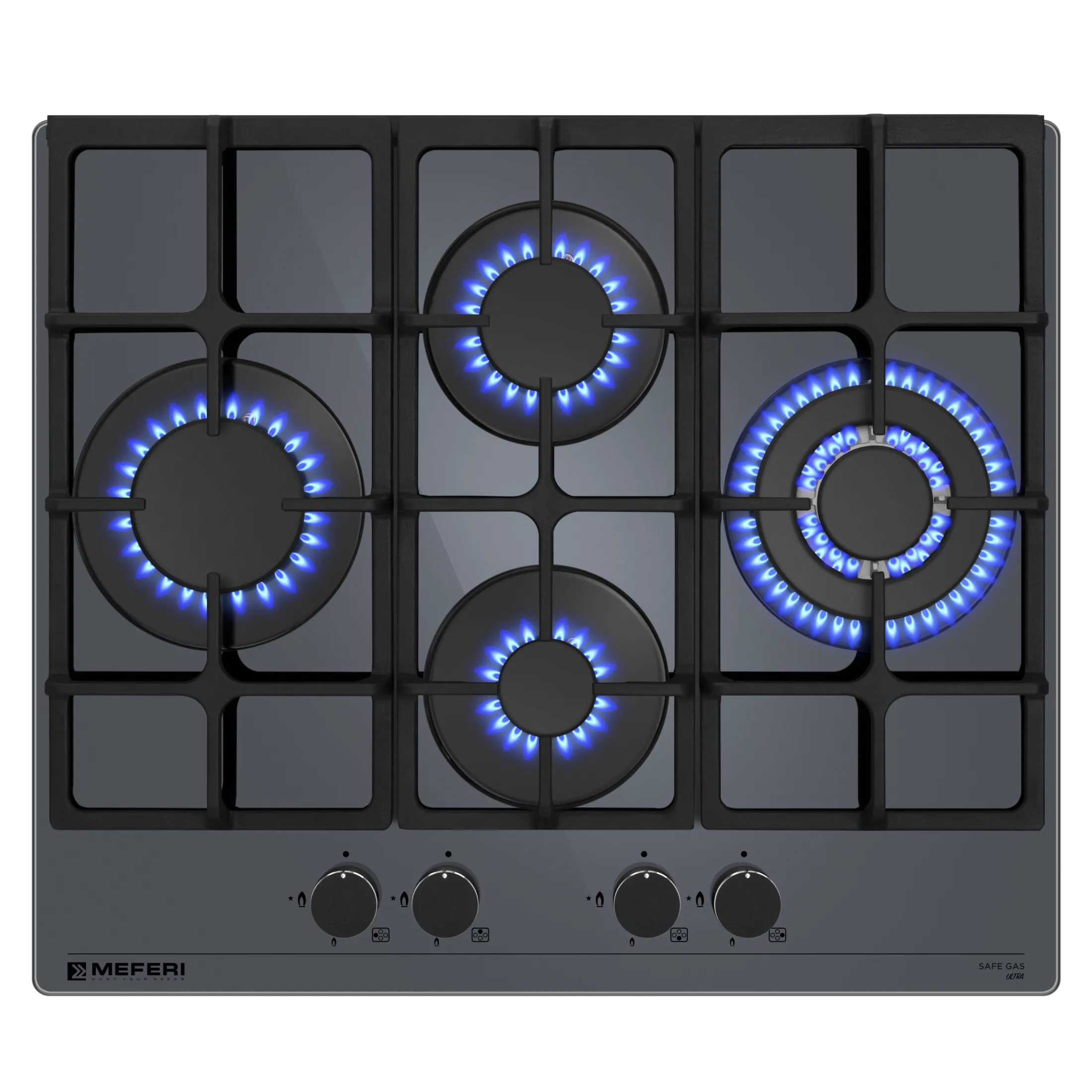 - Полный контроль: Газовая варочная панель MEFERI MGH604GR GLASS ULTRA позволяет вам полностью контролировать процесс готовки, регулируя интенсивность огня под каждой конфоркой.