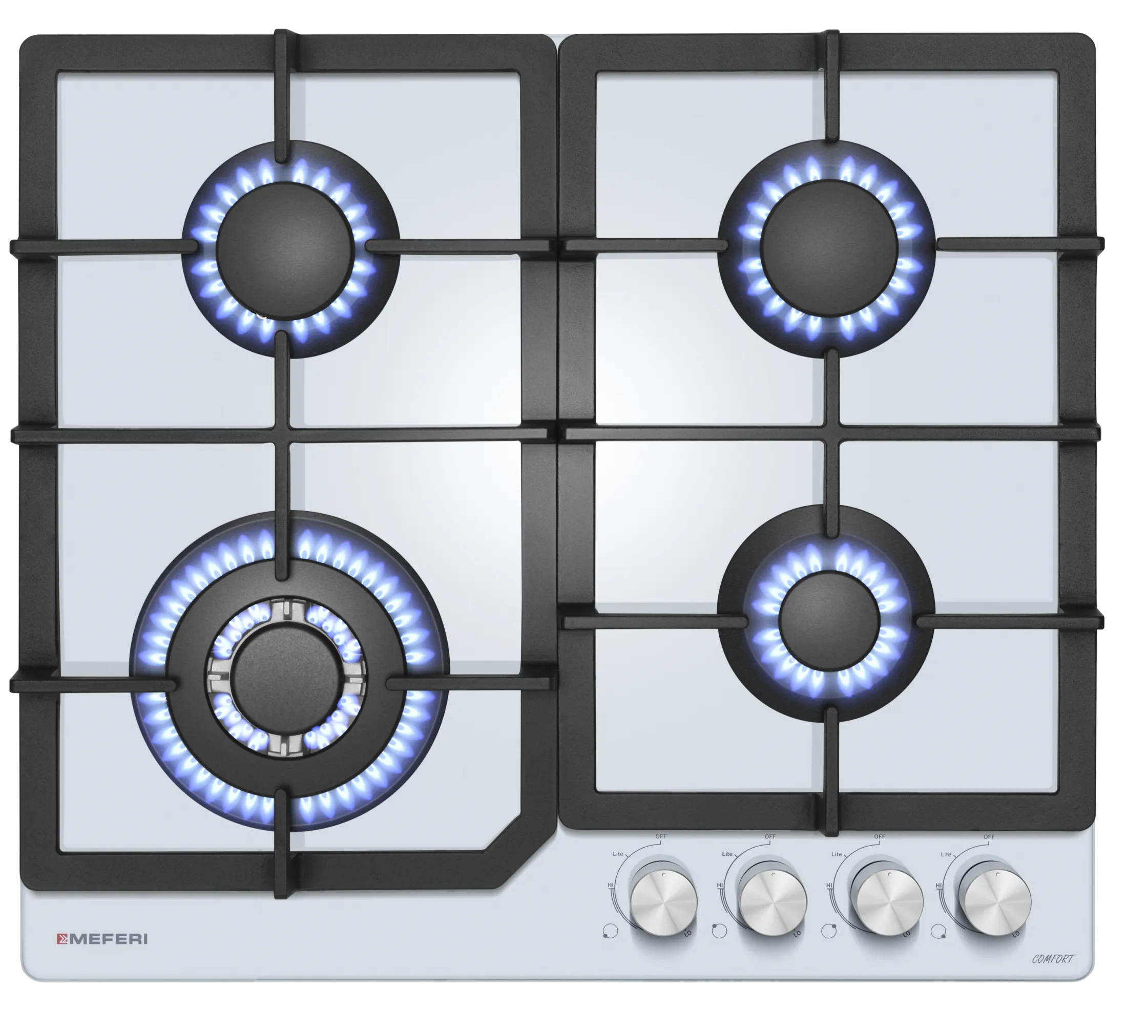MEFERI MGH604WH GLASS COMFORT – это не просто варочная панель, это ваш помощник на кухне, чтобы вы могли приготовить вкусные блюда быстро и легко. Она идеально сочетается с духовыми шкафами белого цвета серии COMFORT и COMFORT PLUS и белыми вытяжками GLASS COMFROT, COMFORT PLUS, GLASS ULTRA.