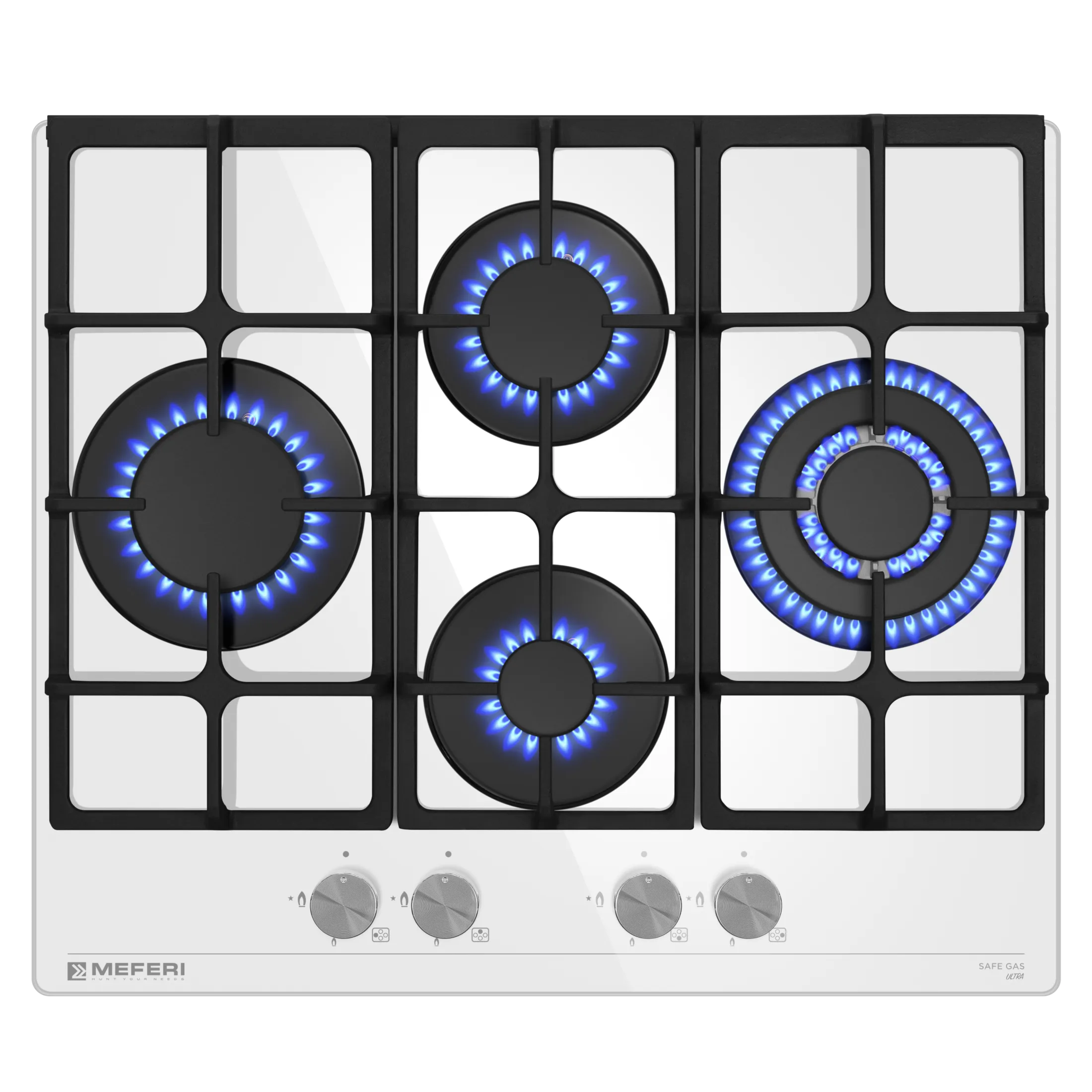 - Полный контроль: Газовая варочная панель MEFERI MGH604WH GLASS ULTRA позволяет вам полностью контролировать процесс готовки, регулируя интенсивность огня под каждой конфоркой.