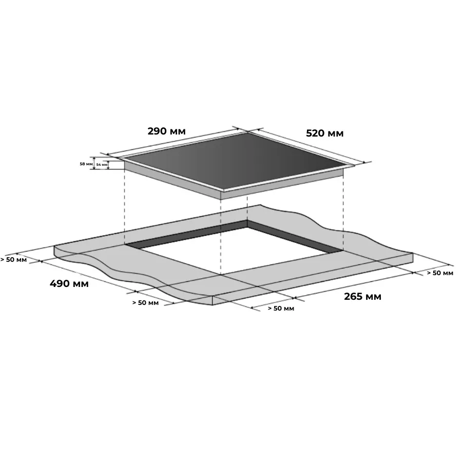 | Размеры зоны встраивания, мм | 265x490 |