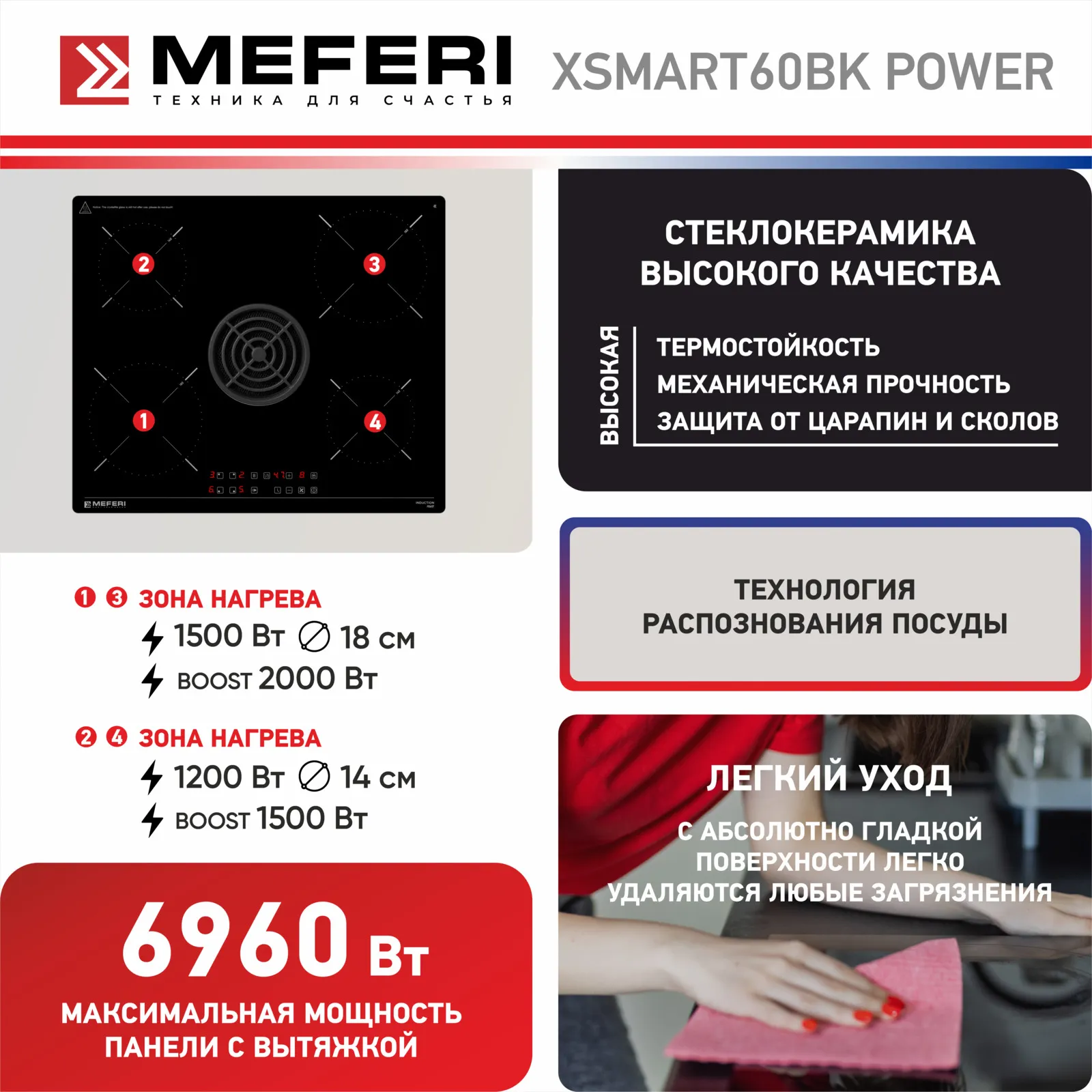 Варочная панель индукционная с вытяжкой MEFERI XSMART60BK POWER