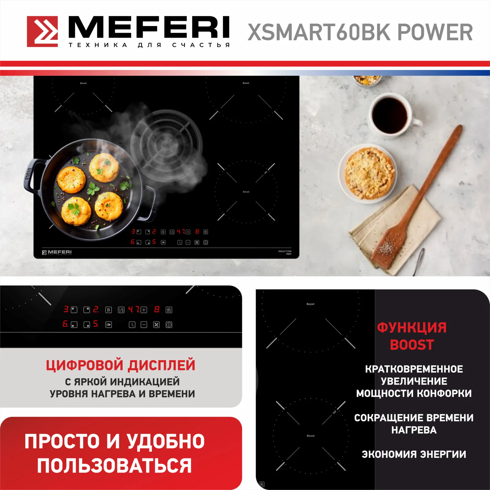 Наслаждайтесь приготовлением блюд высшего класса с интеллектуальной индукционной варочной панелью MEFERI XSMART60BK POWER.