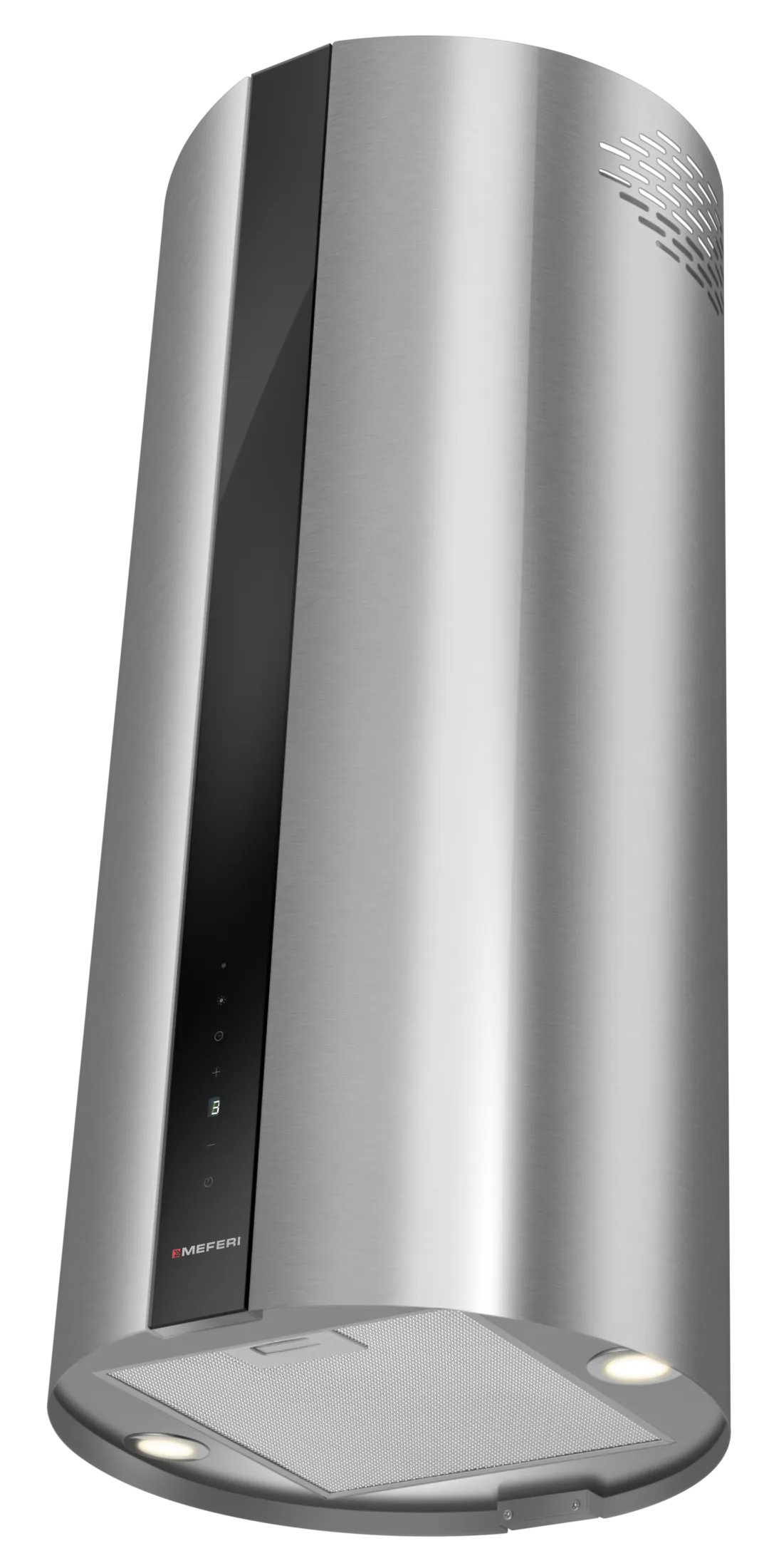 MEFERI TUBE40IX ISLA COMFORT PLUS — мощная цилиндрическая островная вытяжка с сенсорным управлением и LED освещением для кухни до 40 м²