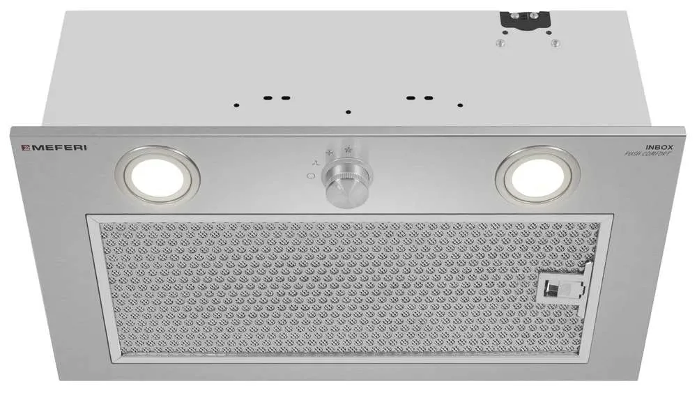Полновстраиваемая вытяжка MEFERI INBOX52IX PUSH COMFORT — мощная и стильная вентиляция для кухни до 35 м²