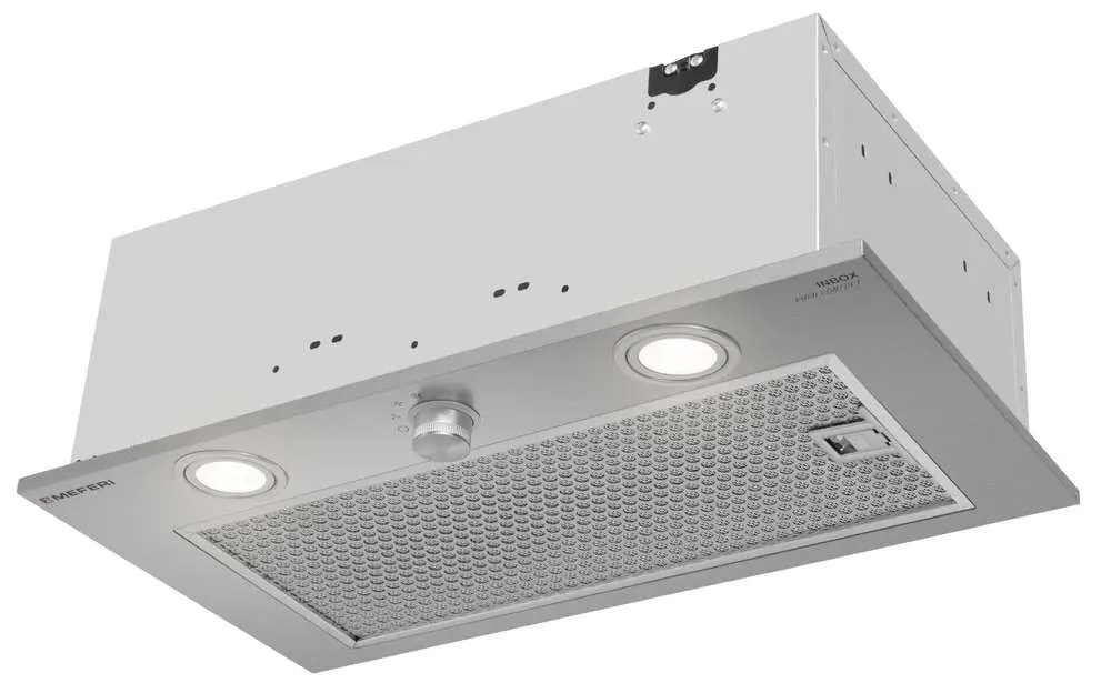 MEFERI INBOX52IX PUSH COMFORT — современная полновстраиваемая вытяжка из нержавеющей стали, которая обеспечивает эффективную очистку воздуха на кухнях площадью до 35 м². Благодаря продвинутым технологиям и элегантному дизайну, эта модель сочетает высокую производительность и удобство использования.