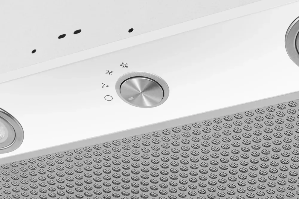 - Прочный металлический корпус и стильная белая панель с фильтром «соты» — надежность и современный дизайн, который освежит интерьер кухни.