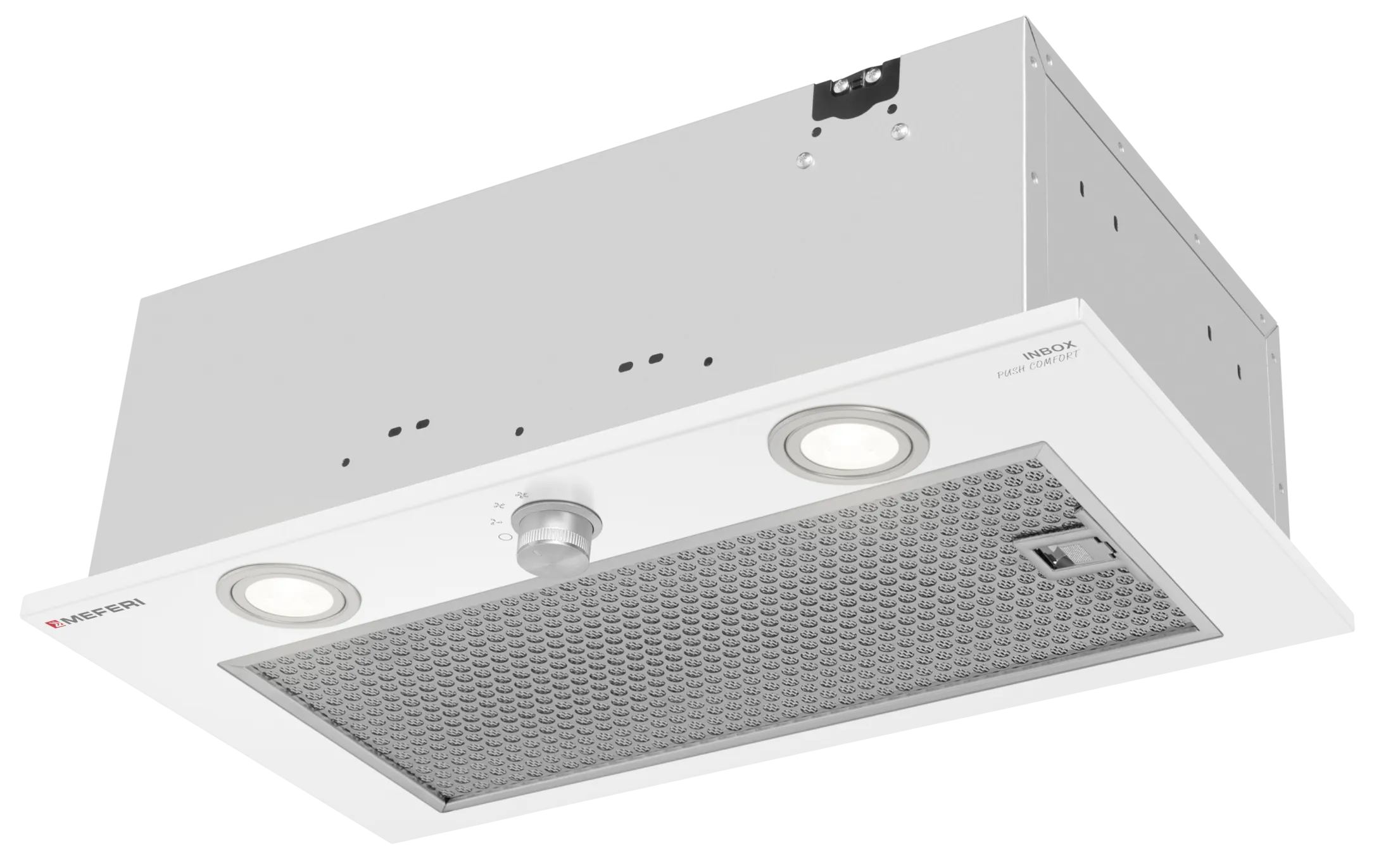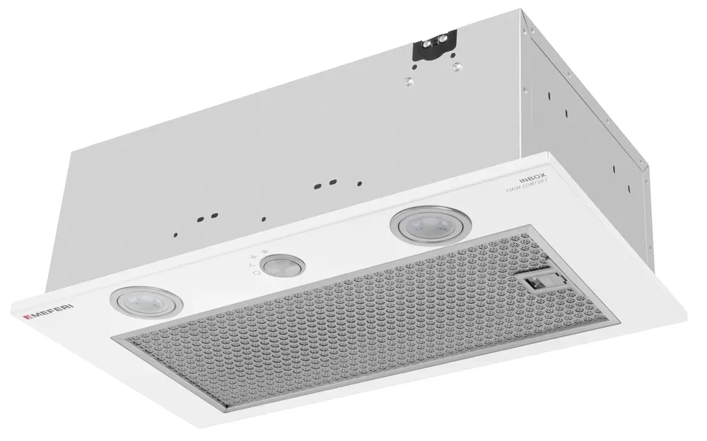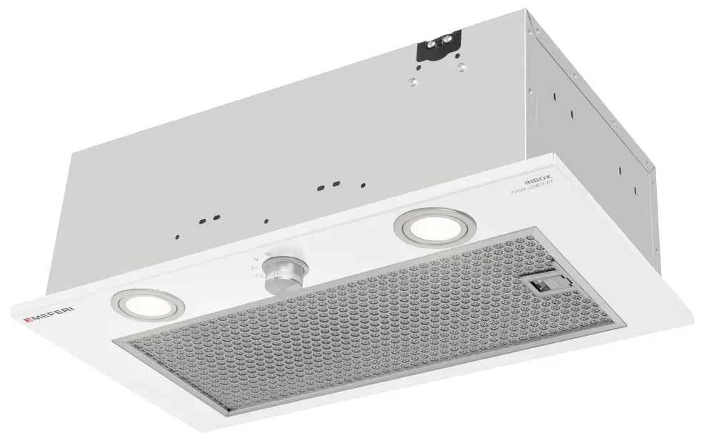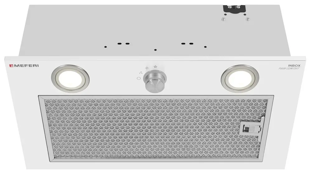 Полновстраиваемая вытяжка MEFERI INBOX52WH PUSH COMFORT — мощная и стильная вентиляция для кухни до 35 м²