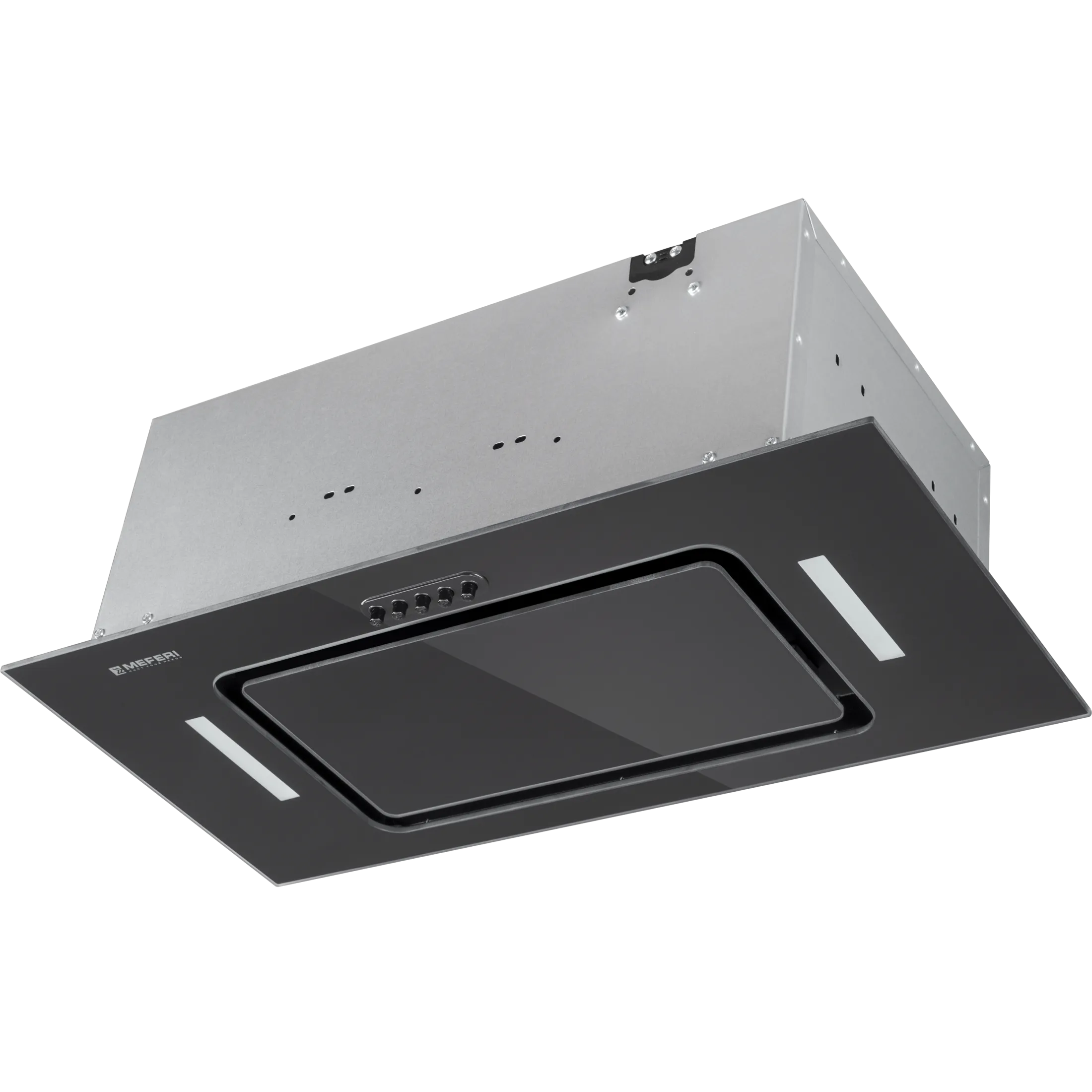 MEFERI INBOX60BK GLASS ULTRA — мощная полновстраиваемая вытяжка с черной стеклянной панелью, производительностью 900 м³/ч для кухни до 30 м²