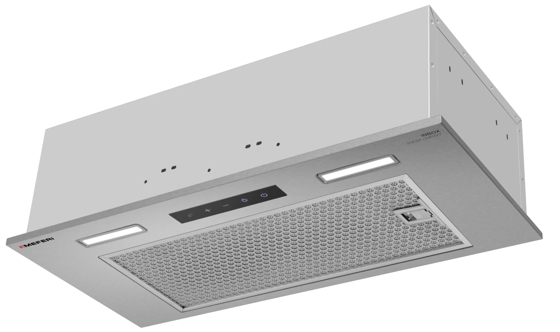 MEFERI INBOX60IX SENSOR COMFORT — это современная полновстраиваемая вытяжка из нержавеющей стали, которая объединяет передовые технологии и элегантный дизайн. Идеально подходит для кухонь площадью до 35 м², обеспечивая эффективное удаление пара, запахов и жира, создавая комфортную и свежую атмосферу в вашем доме.