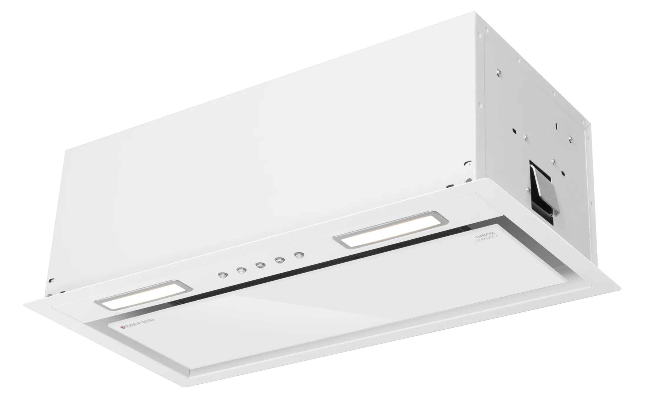 Вытяжка кухонная MEFERI INBOX60WH COMFORT PLUS, 60 см, встраиваемая, белая, производительность 1200 м3/ч, 3 скорости, низкий уровень шума, режимы отвод и рециркуляция, гарантия 3 года