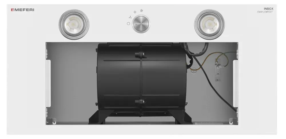 Полновстраиваемая вытяжка MEFERI INBOX60WH PUSH COMFORT — мощная и элегантная вентиляция для кухни до 35 м²