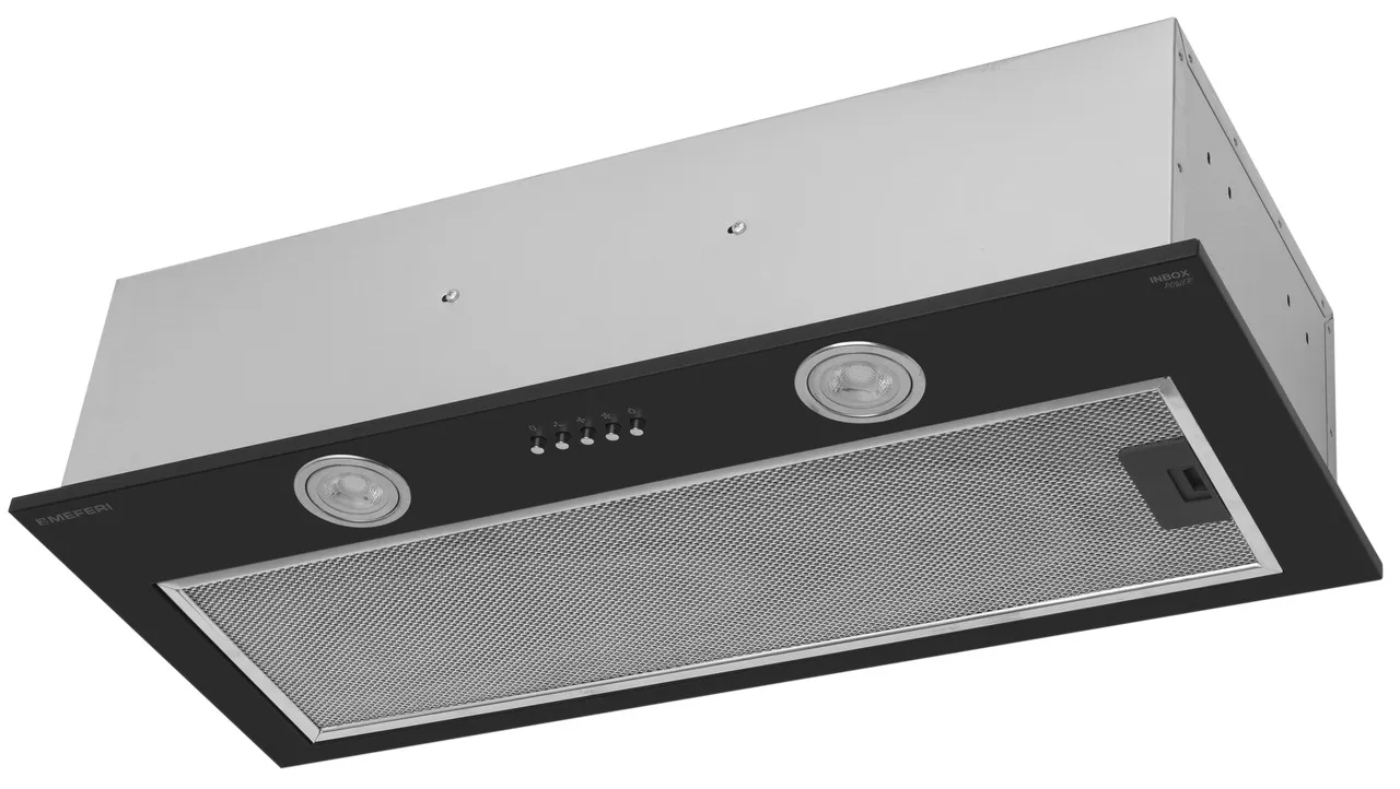 MEFERI INBOX70BK POWER — мощная полновстраиваемая вытяжка в черном корпусе с производительностью 900 м³/ч для кухни до 35 м²