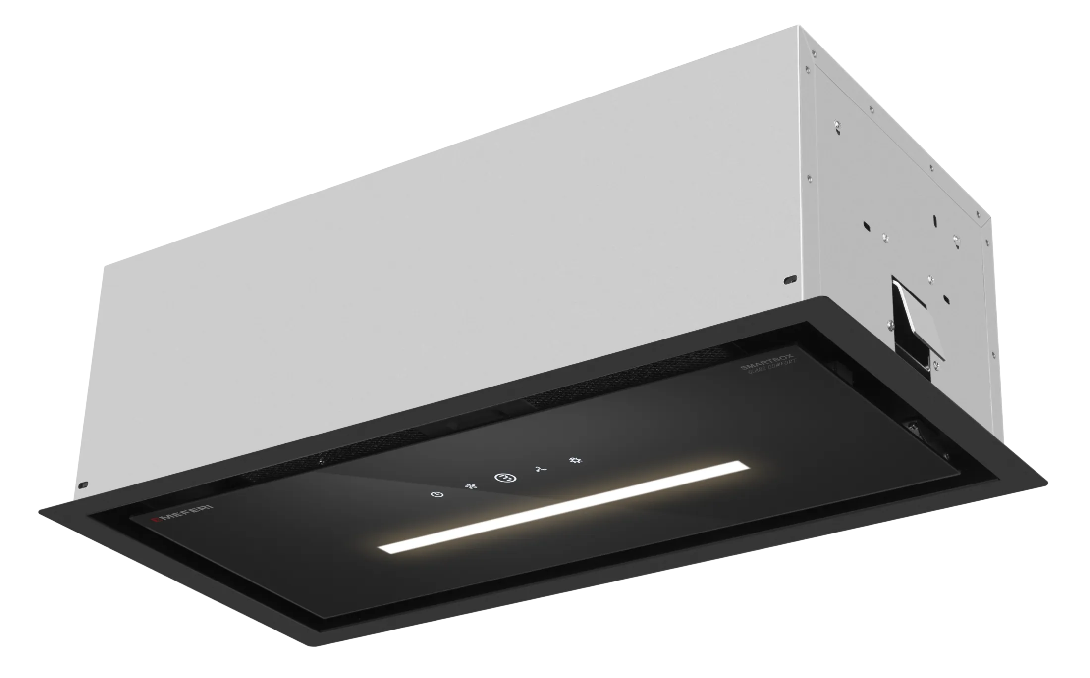 MEFERI SMARTBOX60BK GLASS COMFORT — мощная полновстраиваемая вытяжка с черной стеклянной панелью и производительностью 950 м³/ч для кухни до 35 м²