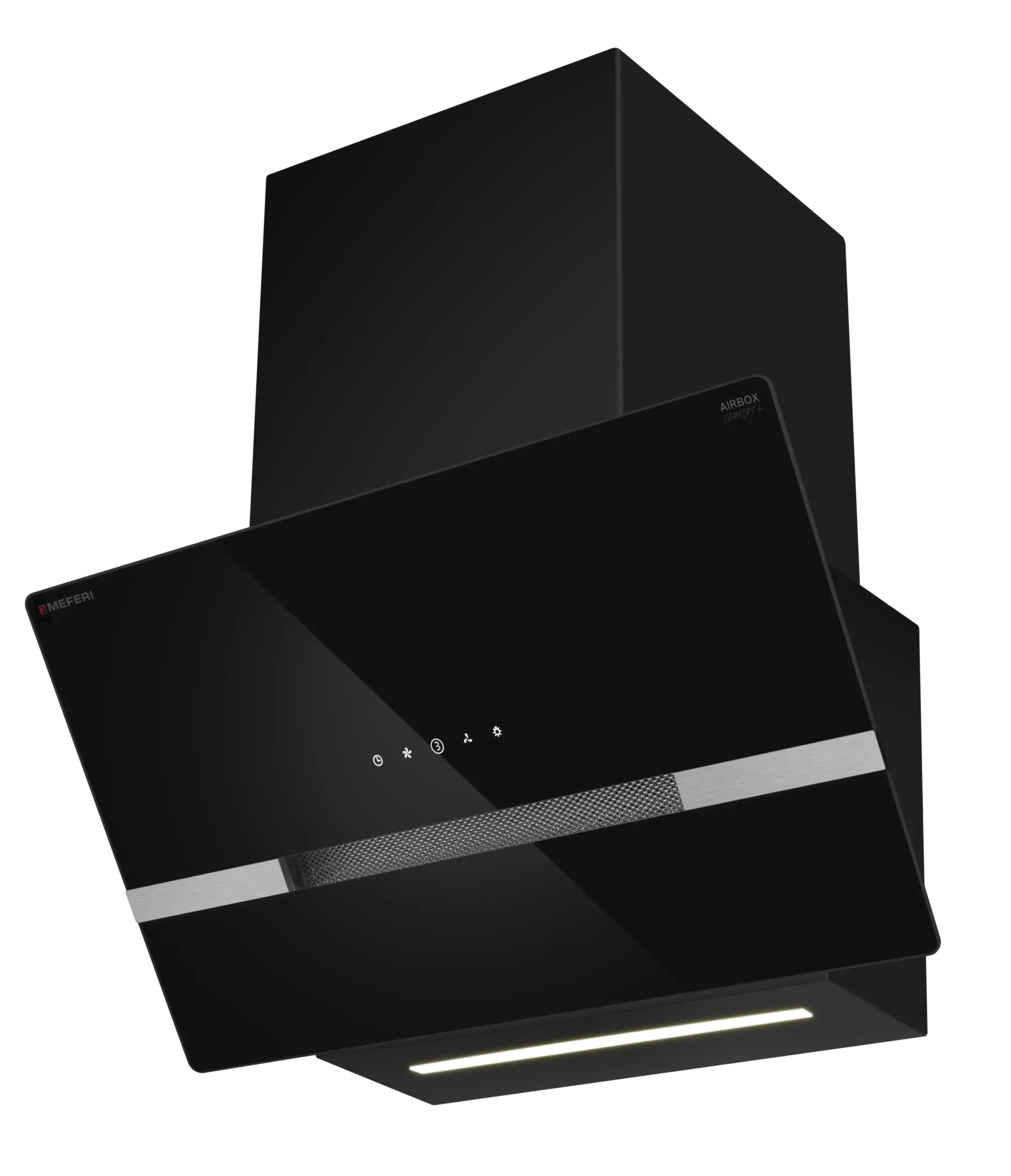 Вытяжка кухонная MEFERI AIRBOX60BK COMFORT PLUS, 60 см, наклонная, черная, стекло, производительность 1200 м3/ч, 3 скорости, низкий уровень шума, режимы отвод и рециркуляция, гарантия 3 года