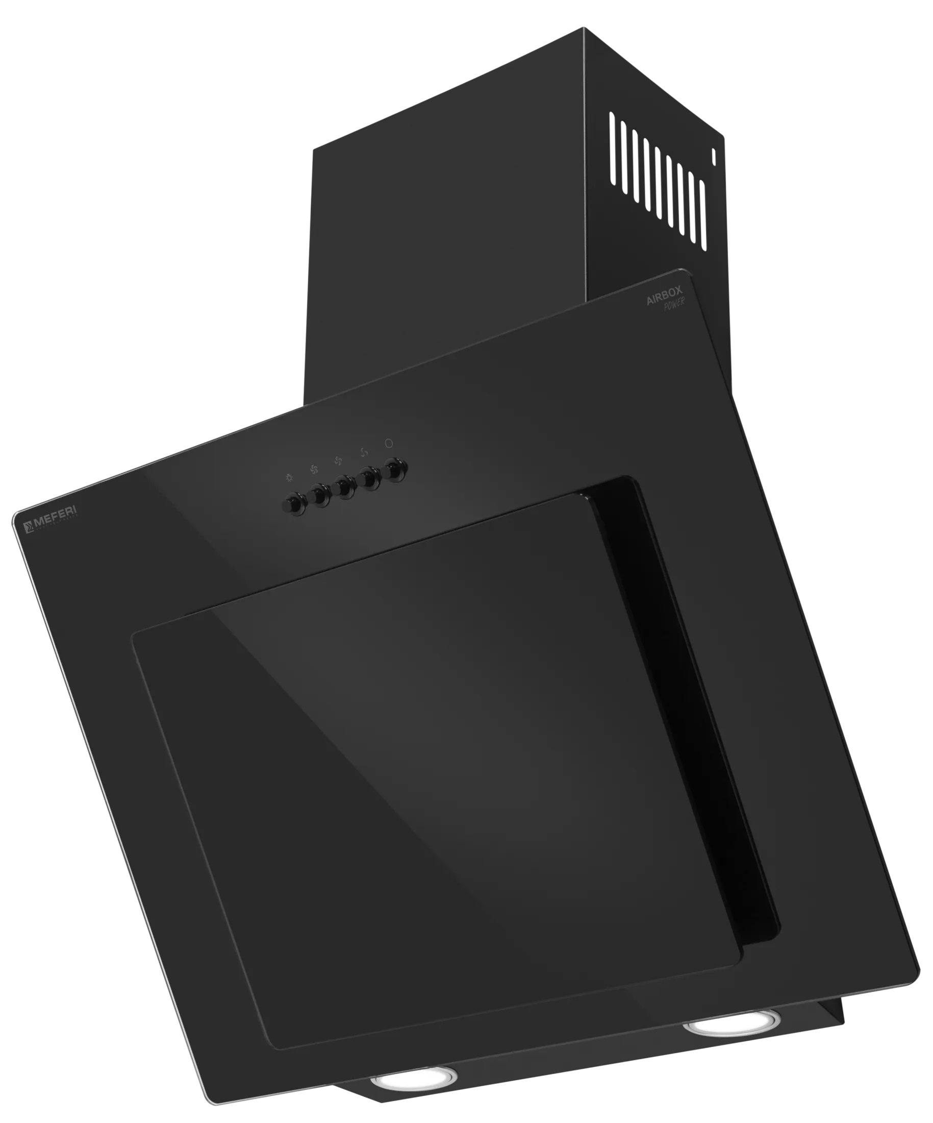 Вытяжка кухонная MEFERI AIRBOX60BK POWER, 60 см, наклонная, черная, стекло, производительность 900 м3/ч, 3 скорости, низкий уровень шума, режимы отвод и рециркуляция, гарантия 3 года
