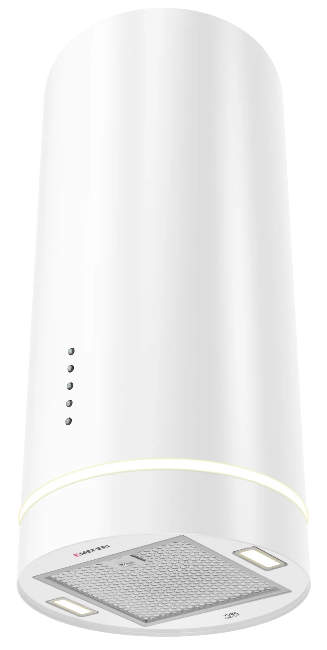 MEFERI TUBE35WH COMFORT — современная цилиндрическая пристенная вытяжка с высокой производительностью для кухни до 40 м²